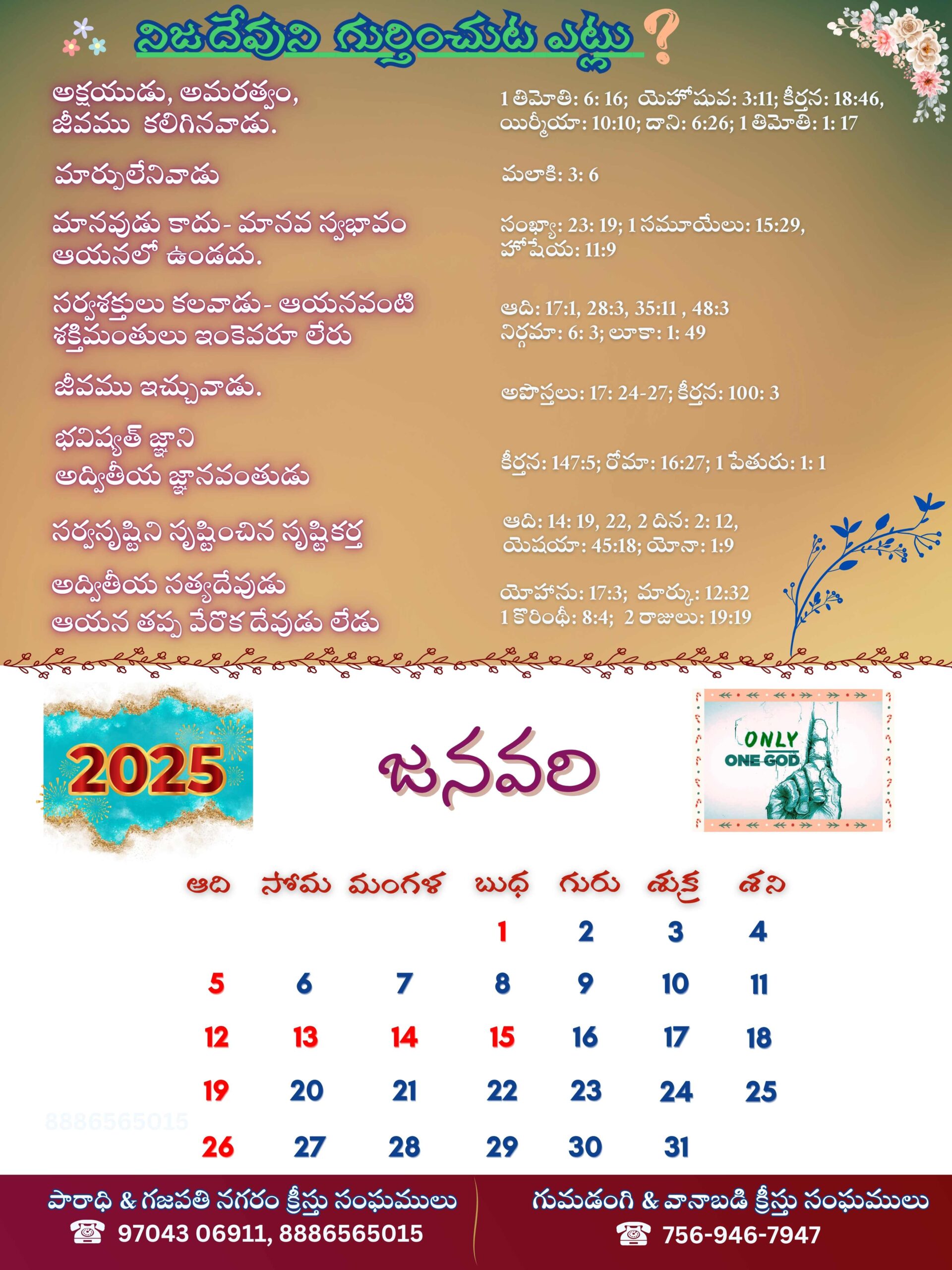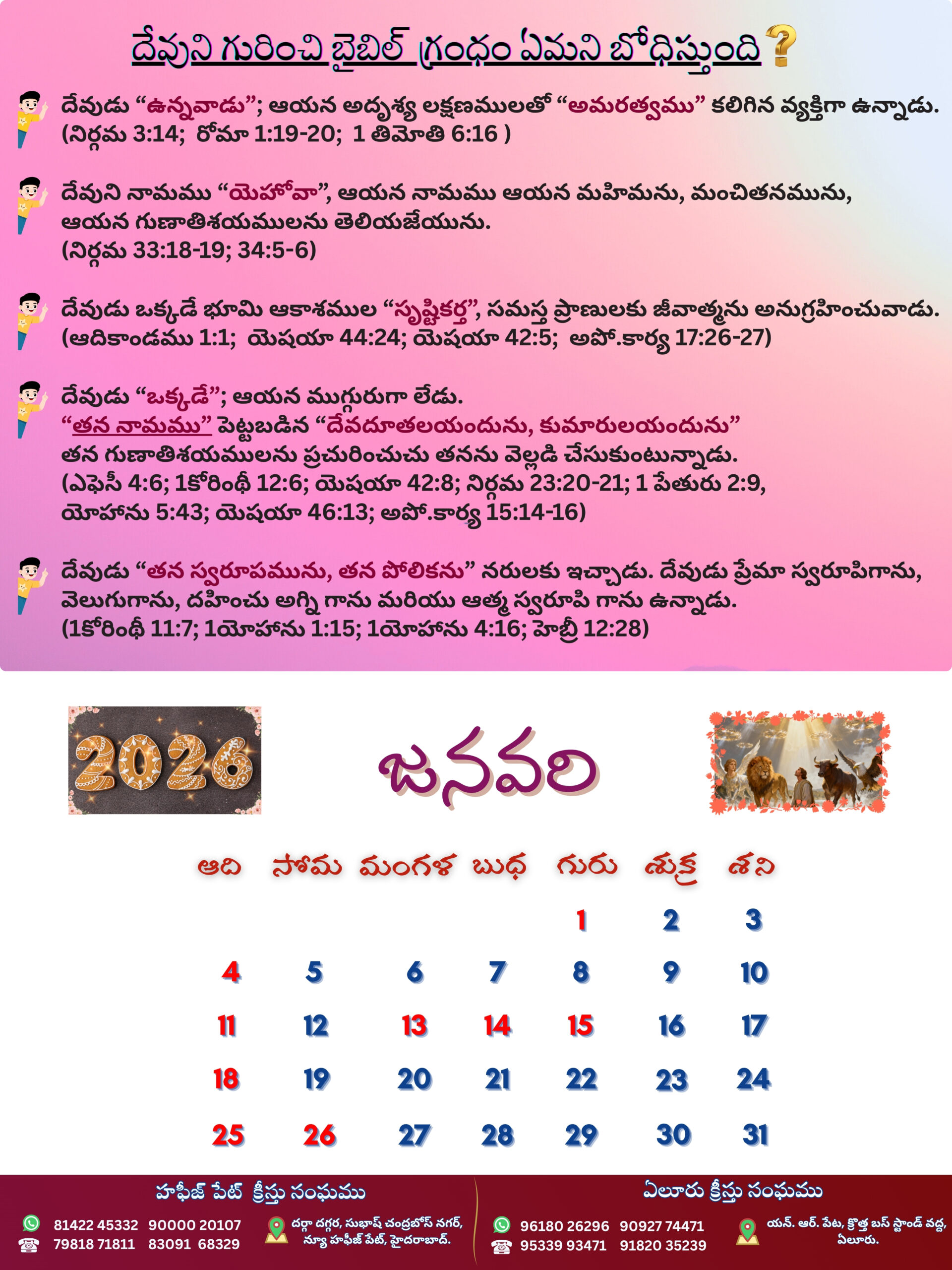 ఈ సంవత్సరం మనం ప్రతి నెలలో ఒక ముఖ్యమైన బైబిల్ విషయంపై ఆధారంగా, విశ్వాస బలాన్ని పెంచుకునేందుకు అనేక విషయాలు తెలుసుకుంటాం. మనలో దేవుని నమ్మకాన్ని స్థాపించుకునేందుకు, ఆయన చేసిన వాగ్దానాలు, బైబిలు సందేశాలను మనం భాగస్వామ్యంగా అధ్యయనం చేస్తాం.